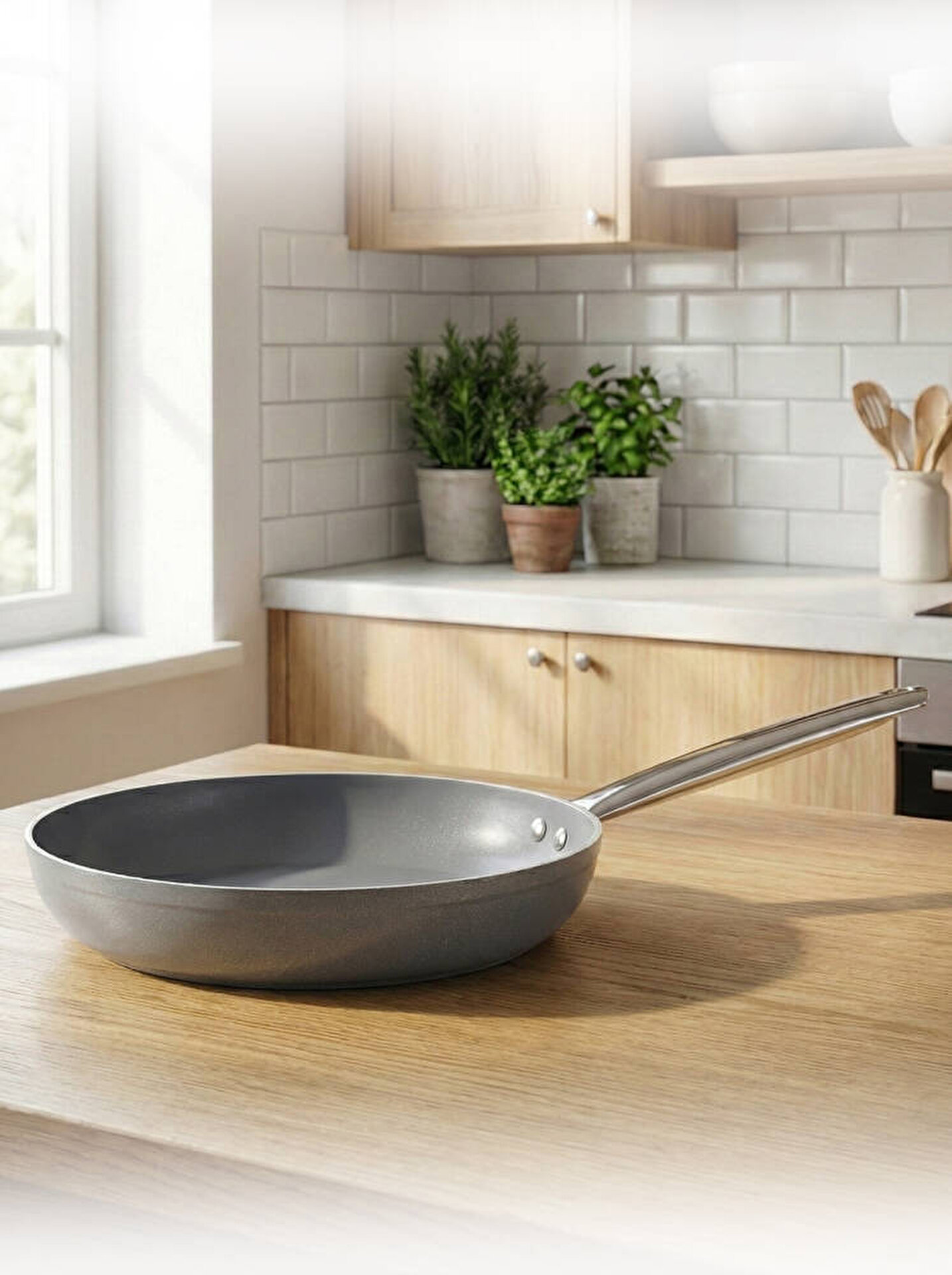 Hascevher Eva Seramik 24 cm Boru Kulplu Tava - Gri
